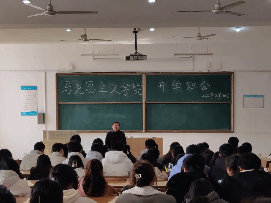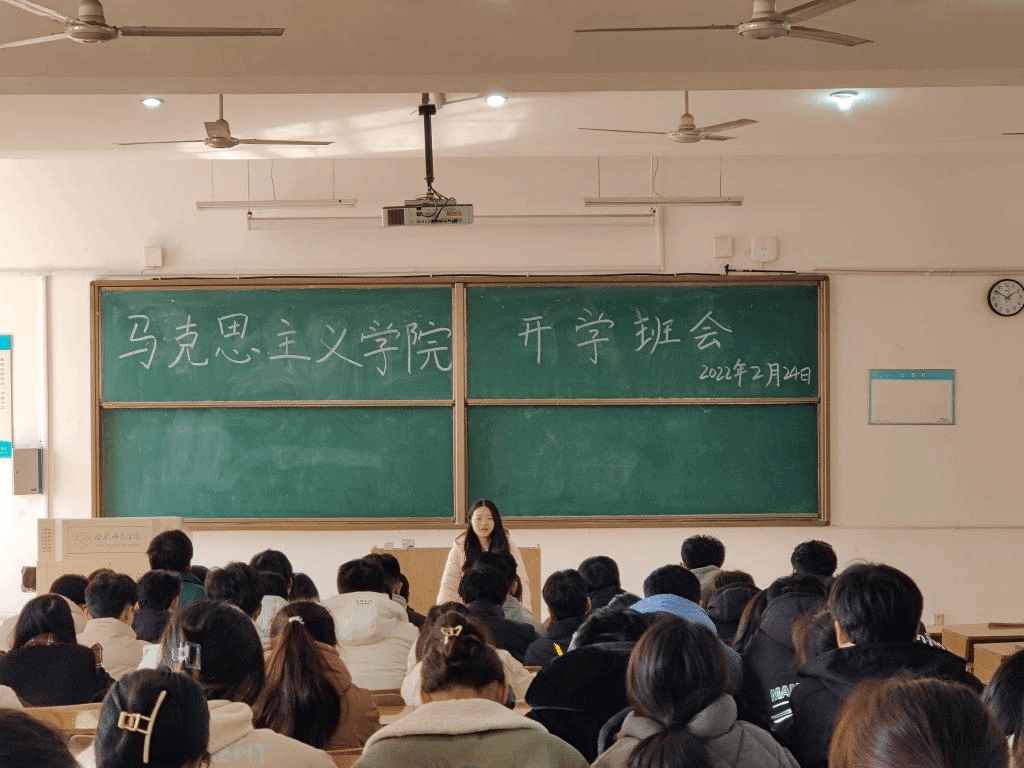 本网讯为做好学院新学期学生工作,亚洲视频一区二区于2月24日在博约楼201召开2022年新学期主题班会。会议由辅导员王萌主持,组织员束道峰和全院学生参会。