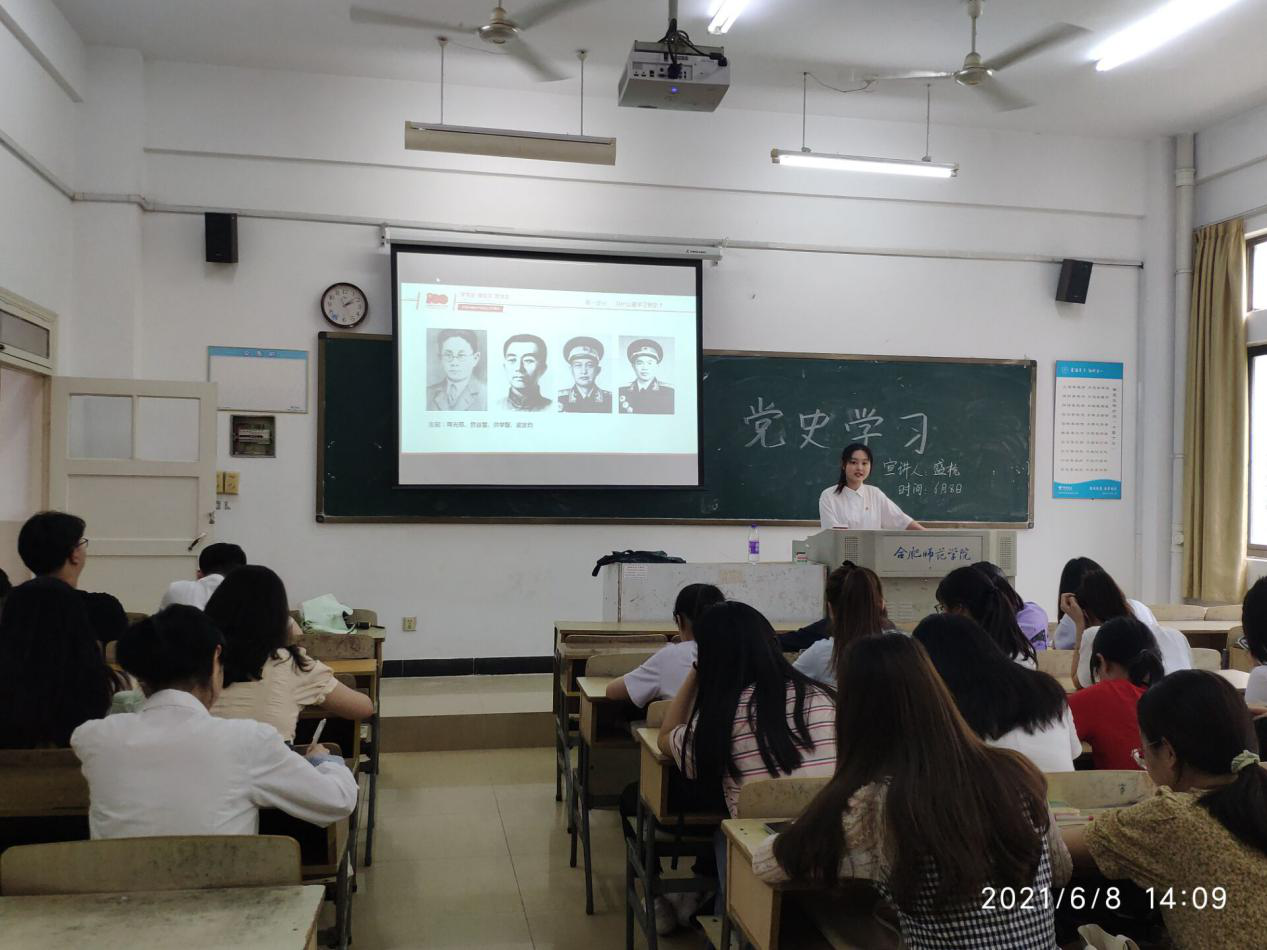本网讯为深入开展党史学习教育,从党的百年伟大奋斗历程中汲取继续前进的智慧和力量,推动党史学习教育往深里走、往心里走、往实里走。6月8日下午,“党史学习教育”青年宣讲团成员盛杭在锦绣校区博约楼107教室举办“学党史强信念跟党走”专题讲座活动,思想政治教育专业2018级全体同学参加讲座。