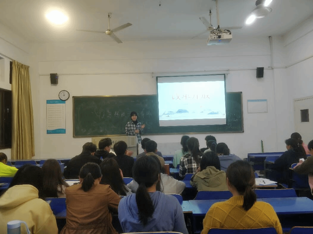 本网讯为迎接建党100周年,亚洲视频一区二区2018级思想政治教育班于4月20日晚在锦绣校区博约楼103教室举办“改革开放•共筑时代辉煌”主题班会。班会由2018级思想政治教育班团支书方瑞晶主持,2018级思想政治教育班全体同学参加。