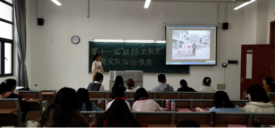 “弘扬正能量”主题实践活动是“思想政治理论课综合实践”课程的重要组成部分,各班级利用课堂教学时间进行预赛。预赛程序规范,每个参赛团队首先介绍视频主题、创作灵感、制作过程以及收获感想等,然后播放制作的短视频,最后评委打分和师生点评。参赛作品总体上内容符合主题,较有创意,画面和声音清晰。预赛不仅彰显了同学们的综合能力,更是体现了新一代大学生积极向上的精神风貌。