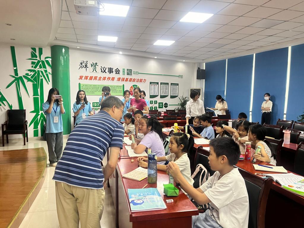 领导老师们与小先生们、小学员们亲热交谈,刘艳强调要坚持安全第一的原则,保障自身与小学员们的安全,并鼓励小学生们通过此次的暑期实践活动,为日后成为一名优秀教师积累经验。何光辉提出我们有来自新疆的小先生,可以结合自身特色开展介绍少数民族特色的课程,感受中华民族的独特魅力和祖国的大家庭的融洽与繁荣。魏兵指出小先生们要立足专业特长,以行知文化课程宣讲陶行知先生的思想文化,始终要坚持社会主义核心价值观,为学员们提供有益于德智体美劳全面发展的课程内容。